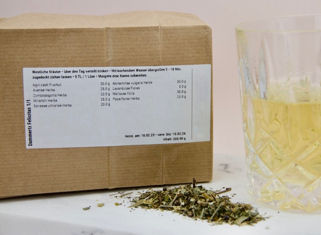 - Eine auf dich zugeschnittene Tee-Rezeptur (hält für 2 Monate)